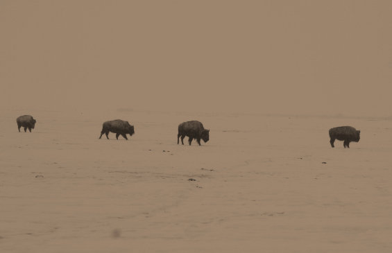 The American Bison was hunted to near extinction by the beginning of the 20th Century. South Park Colorado was once inhabited by thousands of buffalo. A small herd of several hundred remains as a reminder of the past...Its always a breathtaking site to see these hardy animals in the starkness of winter. February 2004