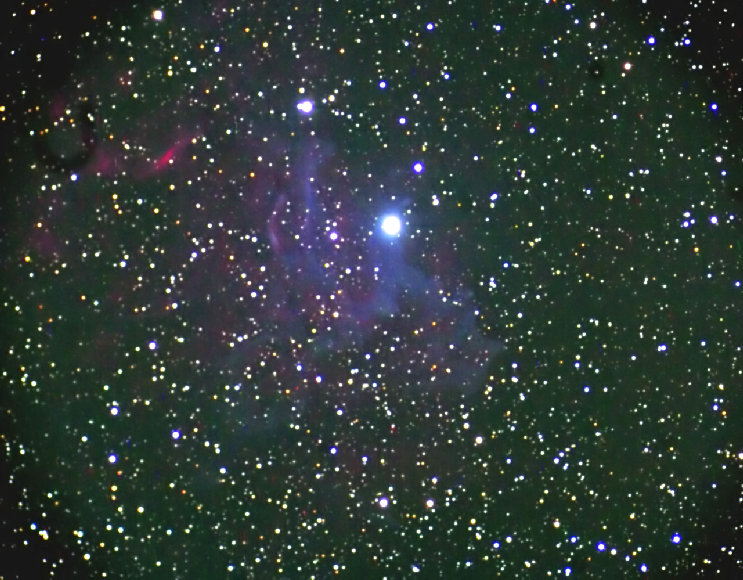 Flaming or Shooting Star Nebula IC 410. This reflection and emission nebula is in the constellation Auriga some 1,600 light years distant. Photo Dec 2005, Summit County, CO, Astrophysics 178 apo, Canon 10D.