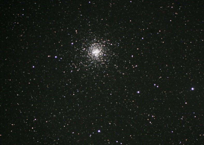 M4 in Scorpius, May 2004. Located near the red heart of the scorpion (the star antares), M4 is a nice binocular sight during summer evenings.Globular clusters are thought to contain some of the oldest stars in our galaxy-roughlly 10 billion years old. M4 is 6,800 light years away and 70 light years in diameter. Brandon 130 APO, f/8, Canon 10D, stack of 6x5min. Breckenridge, CO, July 2005