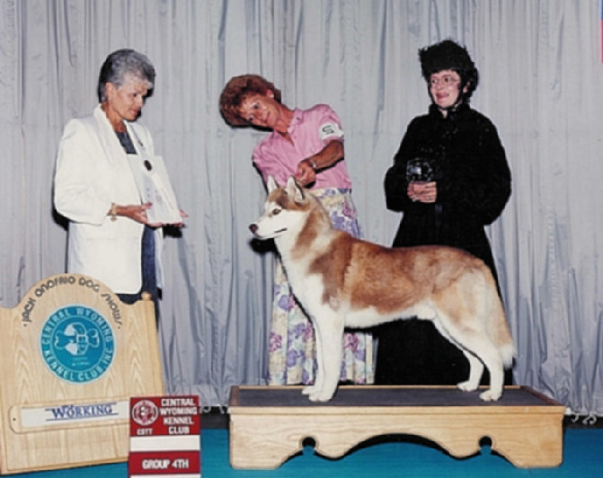 Our dogs have been first and foremost our companions...."Teufel" (german for devil) was a superb dog in every sense. He was my lead dog from 1989 to 2000, he was a show dog, and he was a total character. Teufel had a fondness for porcupines and other off trail diversions. His favorite place in the home was on my pillow and he would wilt when Kathy would kick him off the bed...Teufel was "Best Sled Dog" at the 1992 National Siberian Husky Club of America Specialty Show. More importantly he was our family's beloved pet from 1987-2001. He is our foundation dog and came to us from Dick and Pauline Price's "Kaila" Kennel. Click here for pictures of Teufel at lead in our 8-dog team.