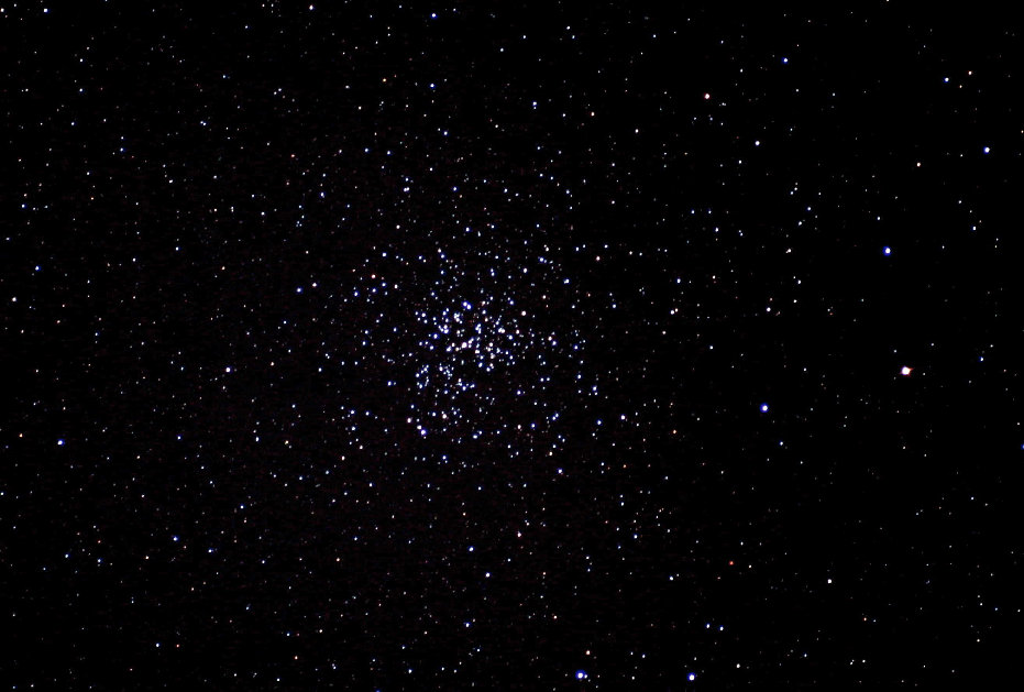 M37 Open Cluster in Auriga. A beautiful and compact open cluster of 150 stars that is located approximately 4,400 light years from earth. In a dark sky location, this cluster truly resembles diamonds on black velvet! A topaz colored star lies in the heart of this cluster. Technical: Brandon 130 APO, f/8, Canon 10D, stack of 4 X 90 sec. Colorado Springs, December 2003